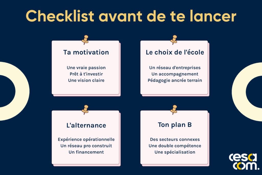 Privilégie une formation généraliste qui te donne une culture solide : stratégie, analyse, créativité et sens critique. L’ultra-spécialisation dès le départ te ferme des portes, alors que le marché évolue vite. C’est pourquoi le choix de ton école compte autant que le cursus lui-même : un vrai réseau d’entreprises partenaires et un accompagnement structuré vers l’alternance séparent un CV qui circule d’un CV qui dort dans une boîte mail.
